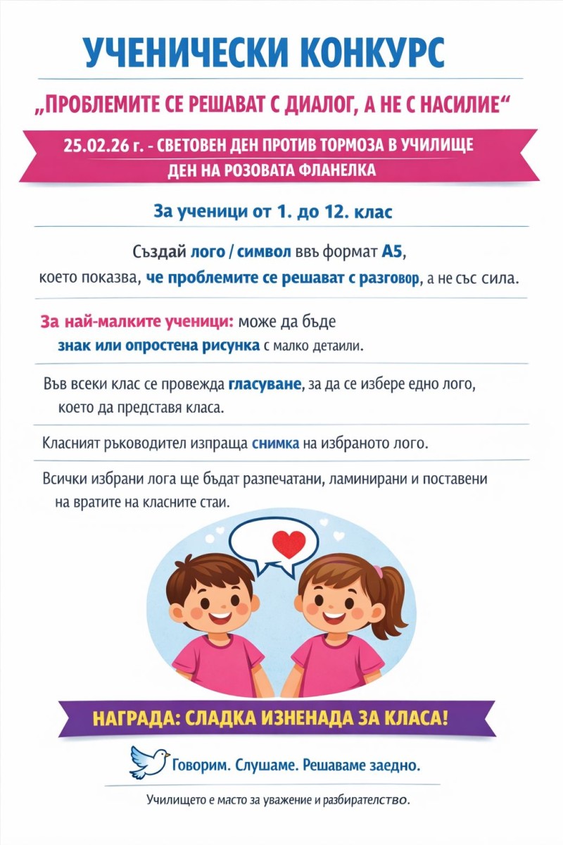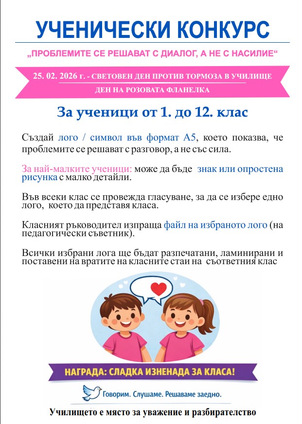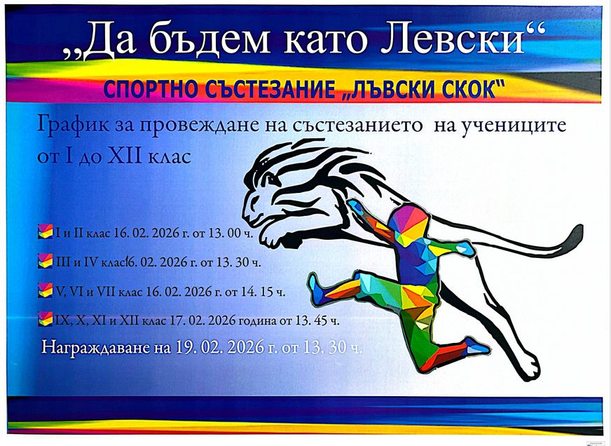 Уважаеми родители на бъдещи първокласници, Каним Ви на информационна родителска среща, която ще се проведе на 26.02.20262 г., от 18:00 часа.
